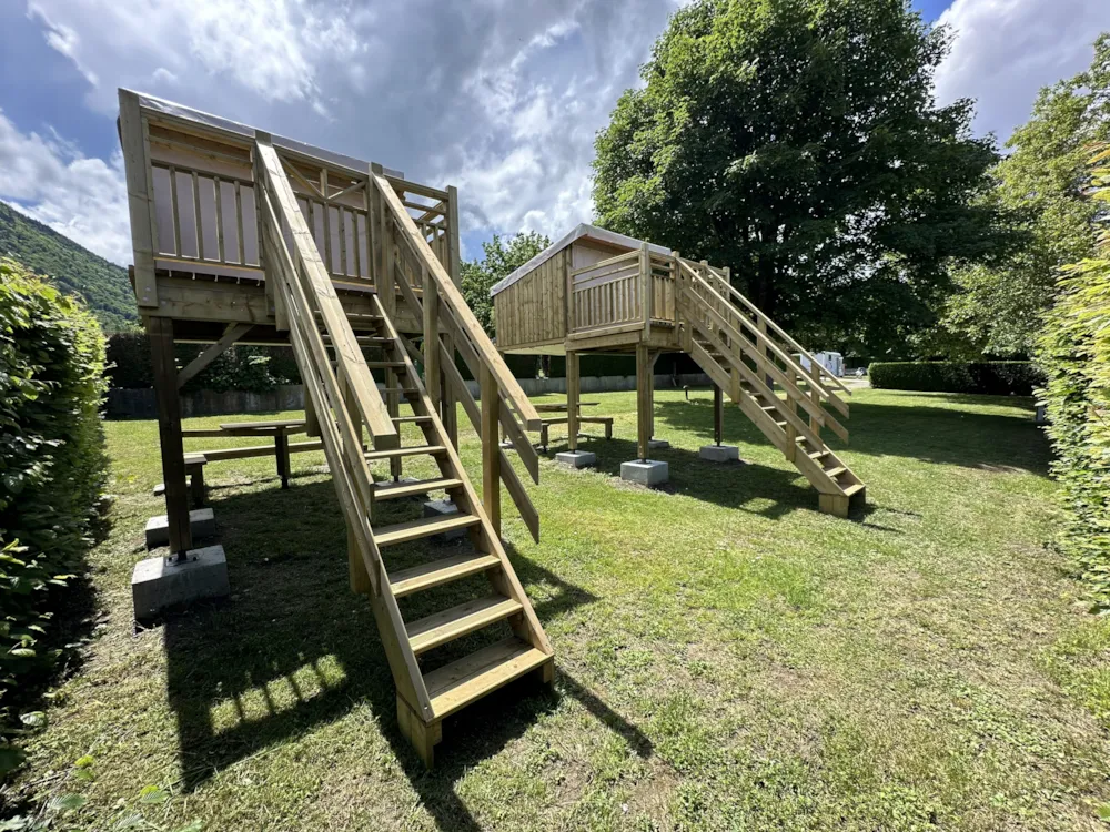 Slaap op stelten terwijl u naar de sterren kijkt, met een beschutte plek om te lunchen en parkeergelegenheid voor uw fiets.
